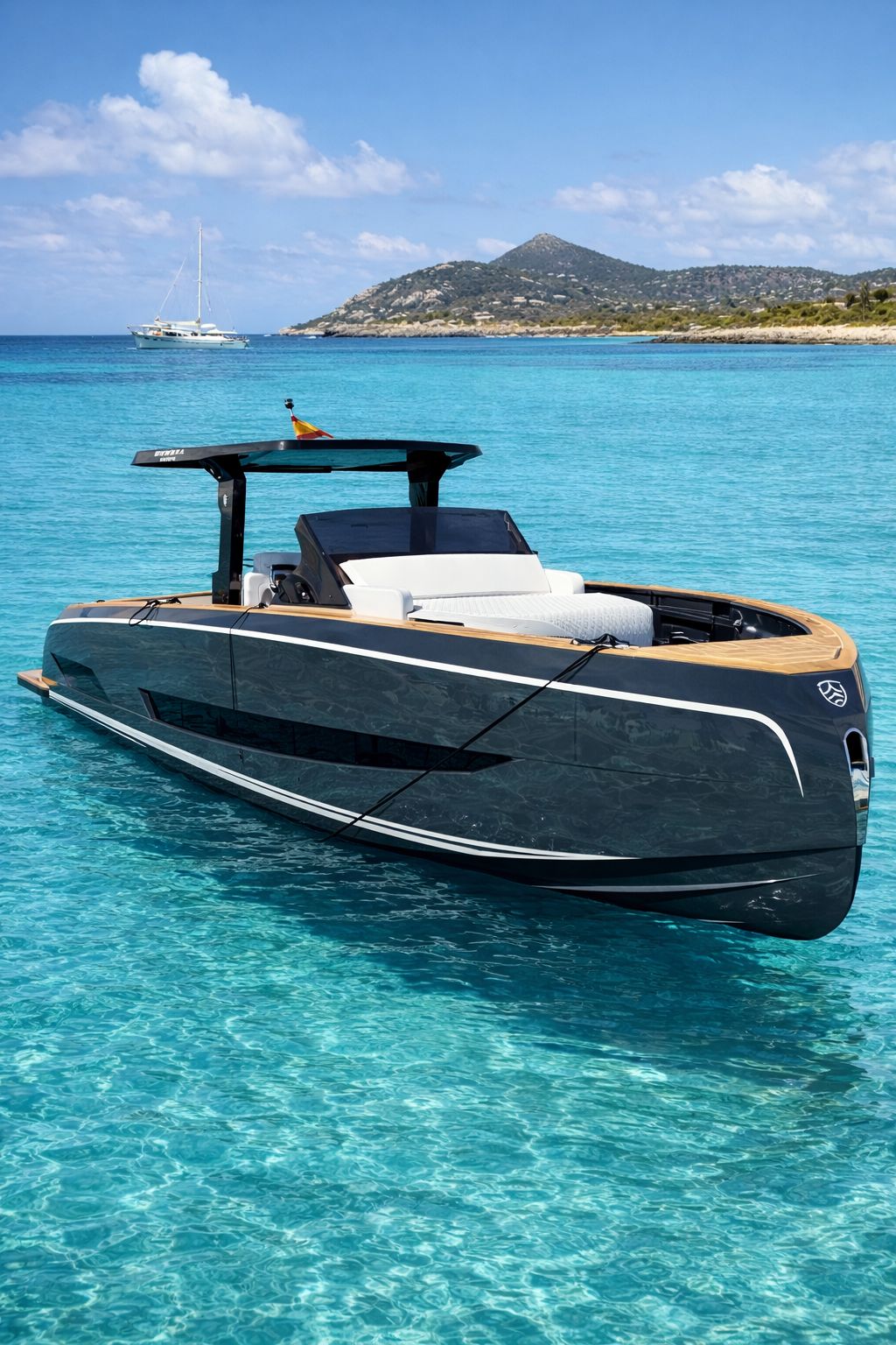 This sleek yacht boasts modern comforts and stylish design, promising an unforgettable journey along Ibiza’s picturesque coastline.